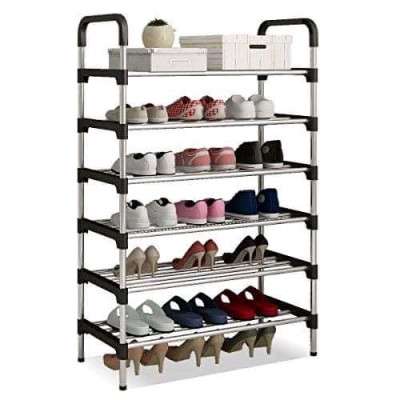 The shoe rack i made of PP and stainless steel it weighs at 1.6 kg the product is easy to assemble and disassemble hence making it portable it can store as much as 21 pairs of shoes the shoe rack is very durable and convenient too. Use these framed portable shoe racks to add extra shoes storage space to your guest room or any room that might need it. This heavy duty metallic frame is very durable. It’s perfect for all your shoe storage needs, highly portable and convenient. . Welcome for the best way to keep your house neat and organized.It’s perfect for all your shoe storage needs, highly portable and convenient.