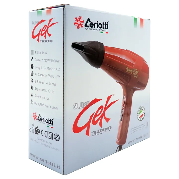 An extremely strong, handy and practical handheld hairdryer, exclusively manufactured for professional use. Gek 3800 comes with 2 selectable speeds and a power of 1700/1900W; reinforced and shockproof external body it is non-deformable under the action of heat. They mostly come in black but can be available in red as well. than you for shopping with MO KABS VENTURES we value you